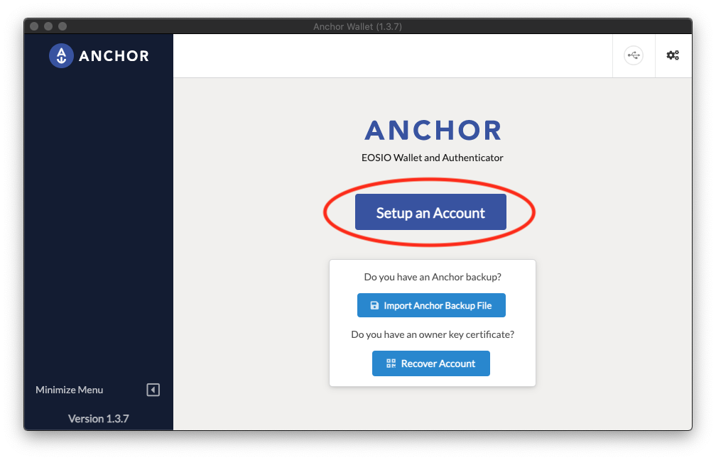 When you open Anchor Wallet for the first time, you’ll be prompted to set your wallet up.